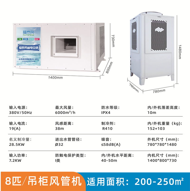 8匹吊掛式管道機蒸發冷省電空調